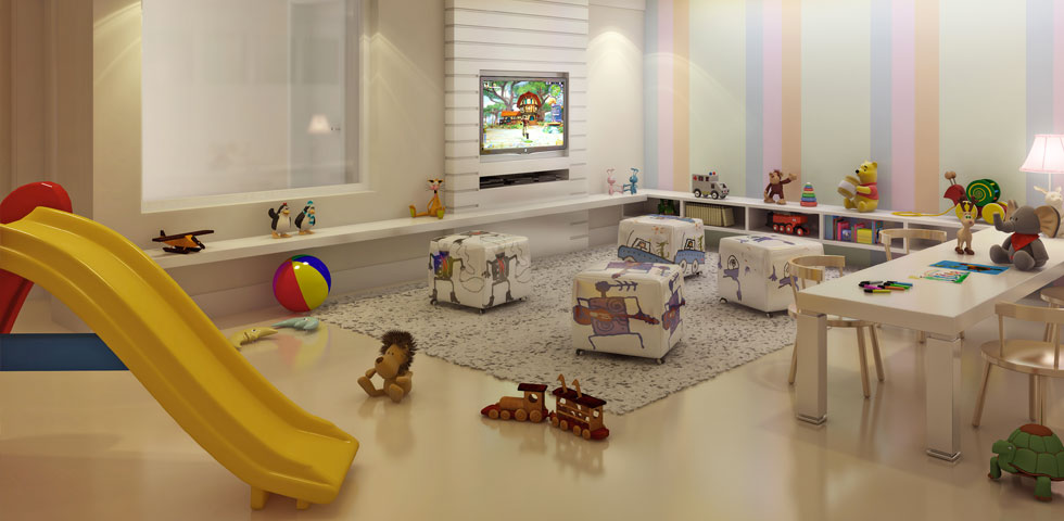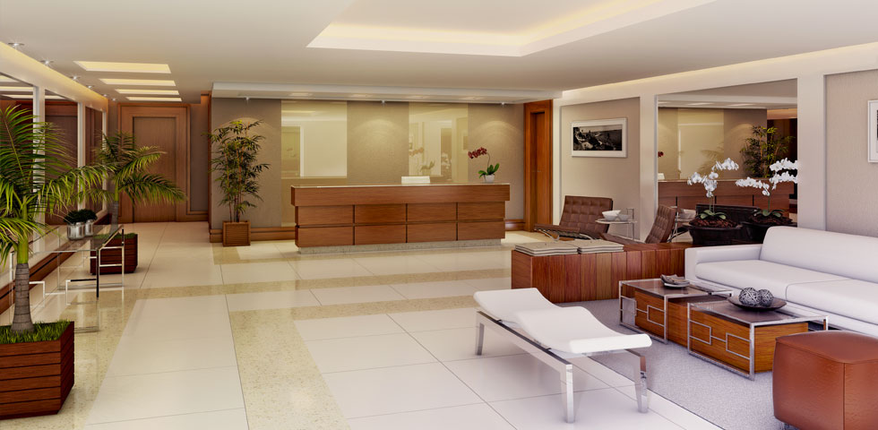 Utilizando o conceito finished building, todo o lobby bem como as demais áreas comuns do edifício são entregues mobiliados e decorados.