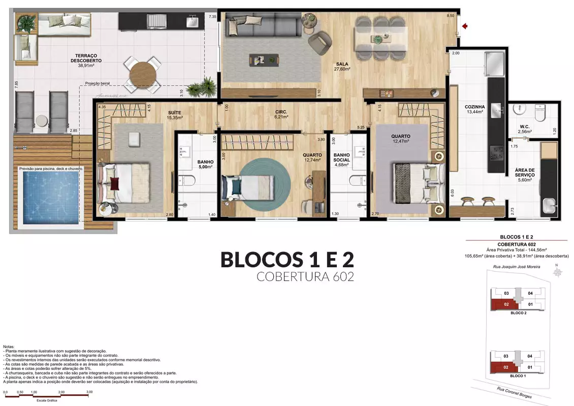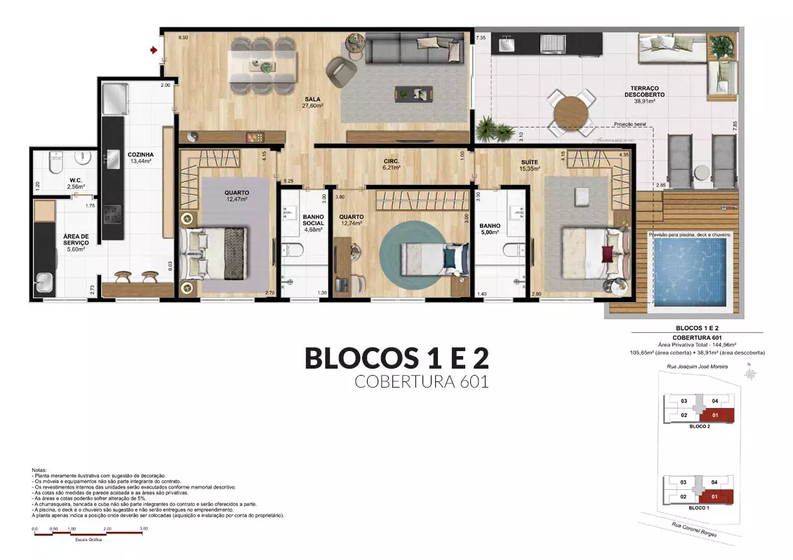 Estrategicamente elaborado para que todos os moradores possam contemplar as belas paisagens, o ar puro, a brisa e o sol.