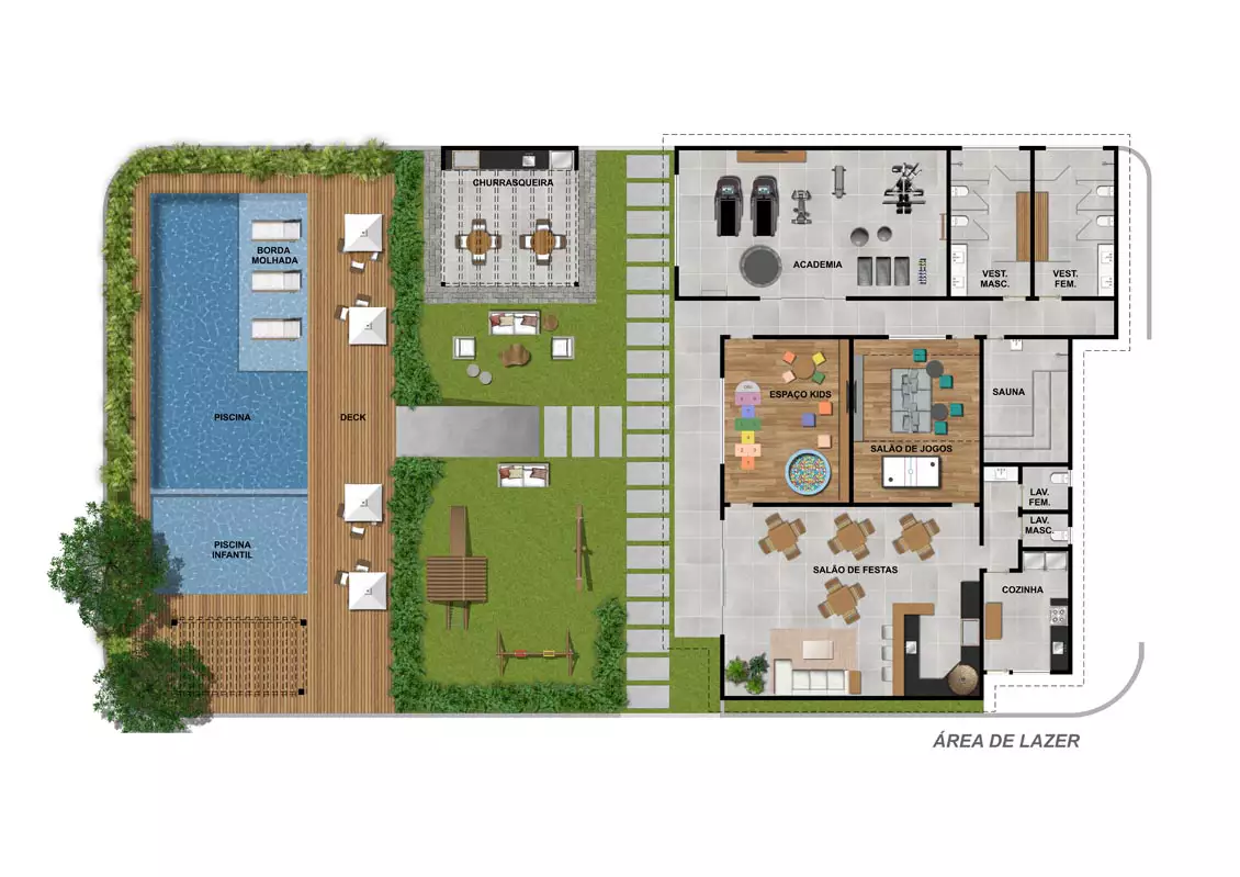 Lazer mais que completo! Apartamentos com 02 quartos, sendo 1 suíte com 1 vaga de garagem. Piscina, 02 churrasqueiras, sauna, espaço fitness, espaço kids, salão de festas/gourmet, salão de jogos e playground externo.