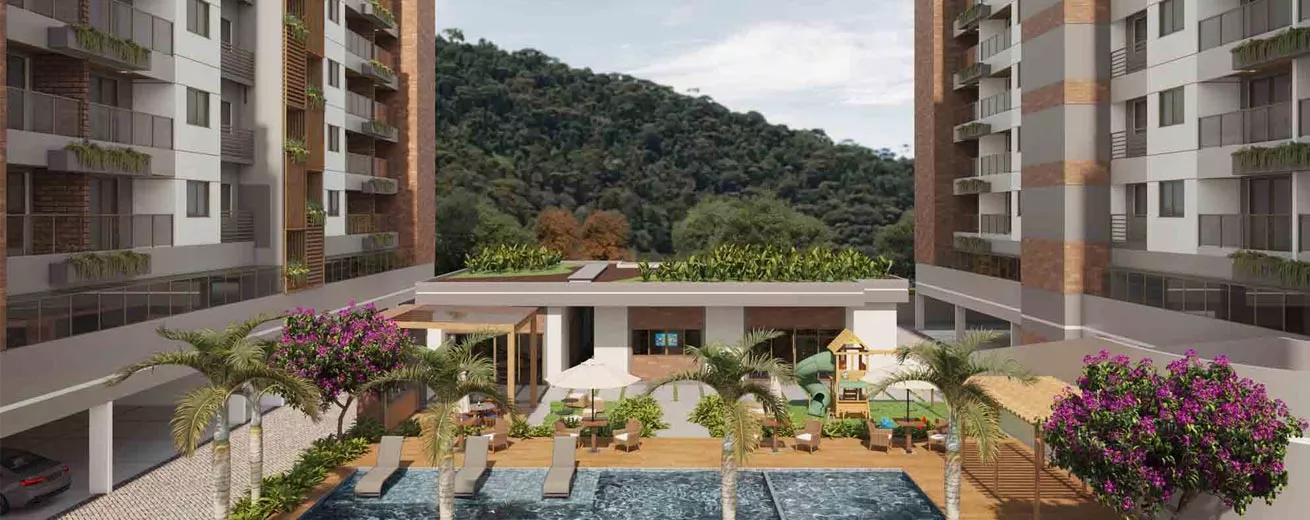 Além de poder usufruir de um lazer privilegiado e completo, com direito a piscina, sauna, 02 churrasqueiras, espaço gourmet, salão de jogos, espaço fitness, playground externo e espaço kids. Unidades com 02 quartos (sendo uma suíte), a apenas 3 minutos ou a 900 metros do centro de Teresópolis.