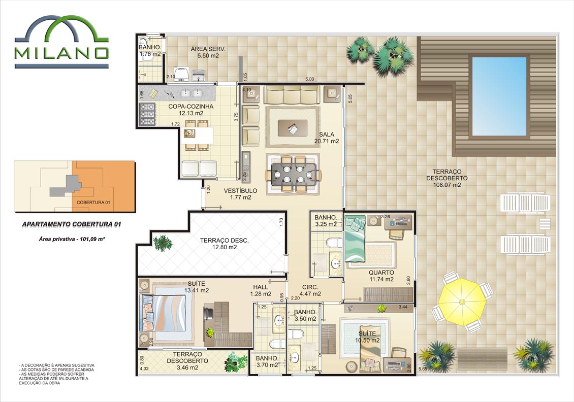 Com 2 coberturas lineares de 3 quartos (2 suítes) com terraço amplo.
