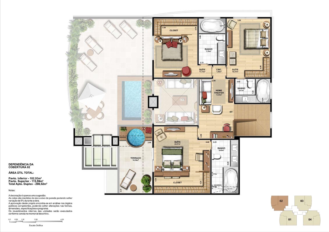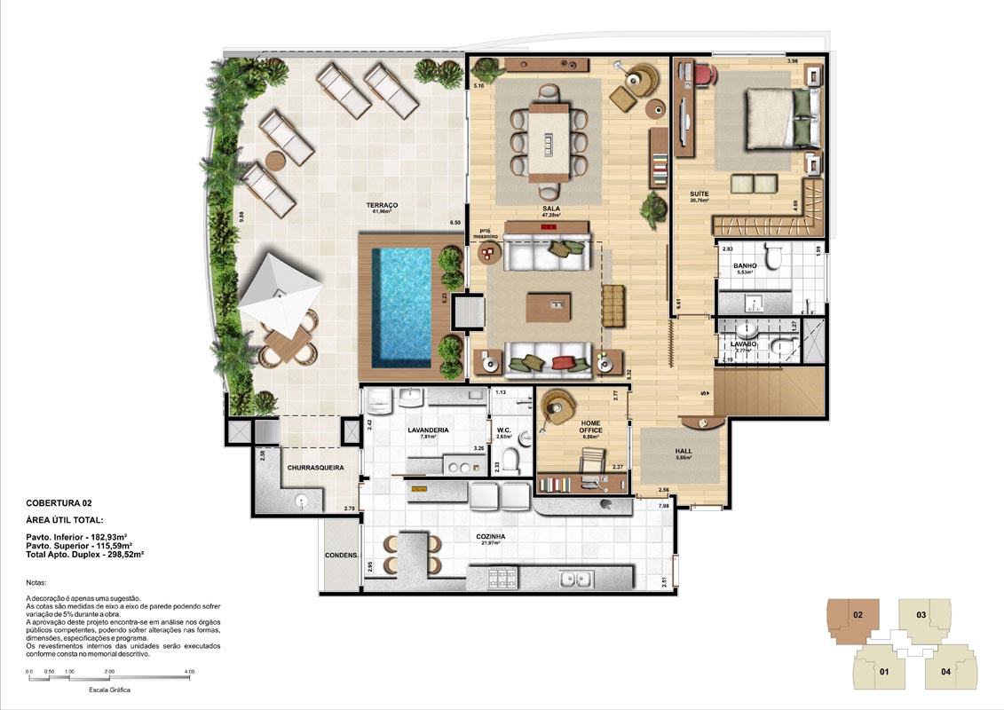 Privacidade exclusiva de uma casa, com unidades completamente independentes, sem nenhuma parede do apartamento em comum com vizinhos.