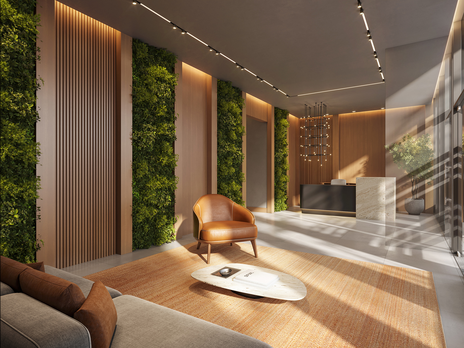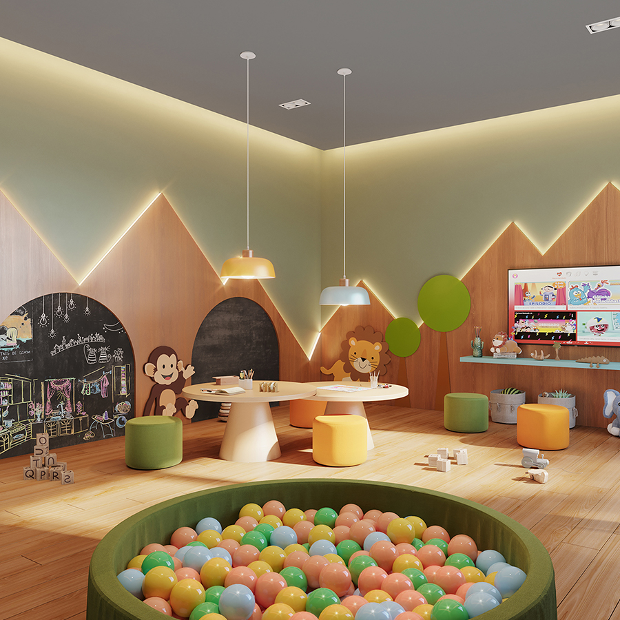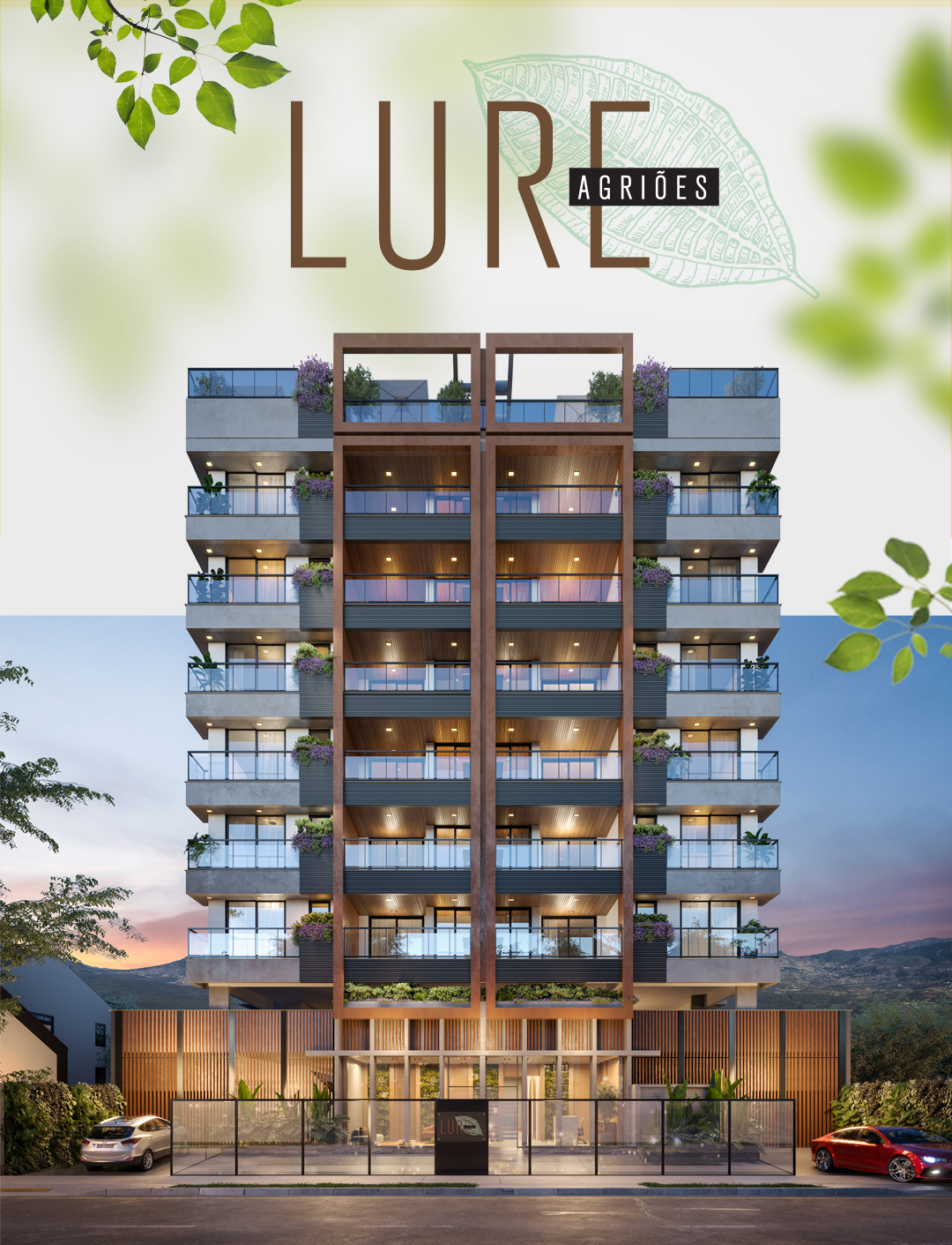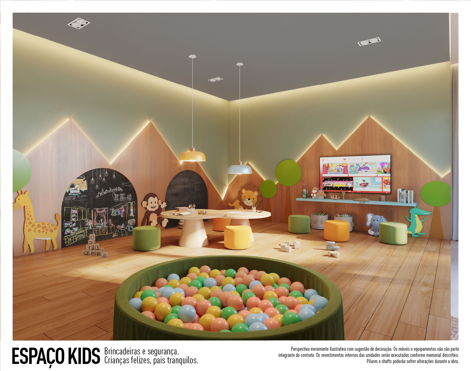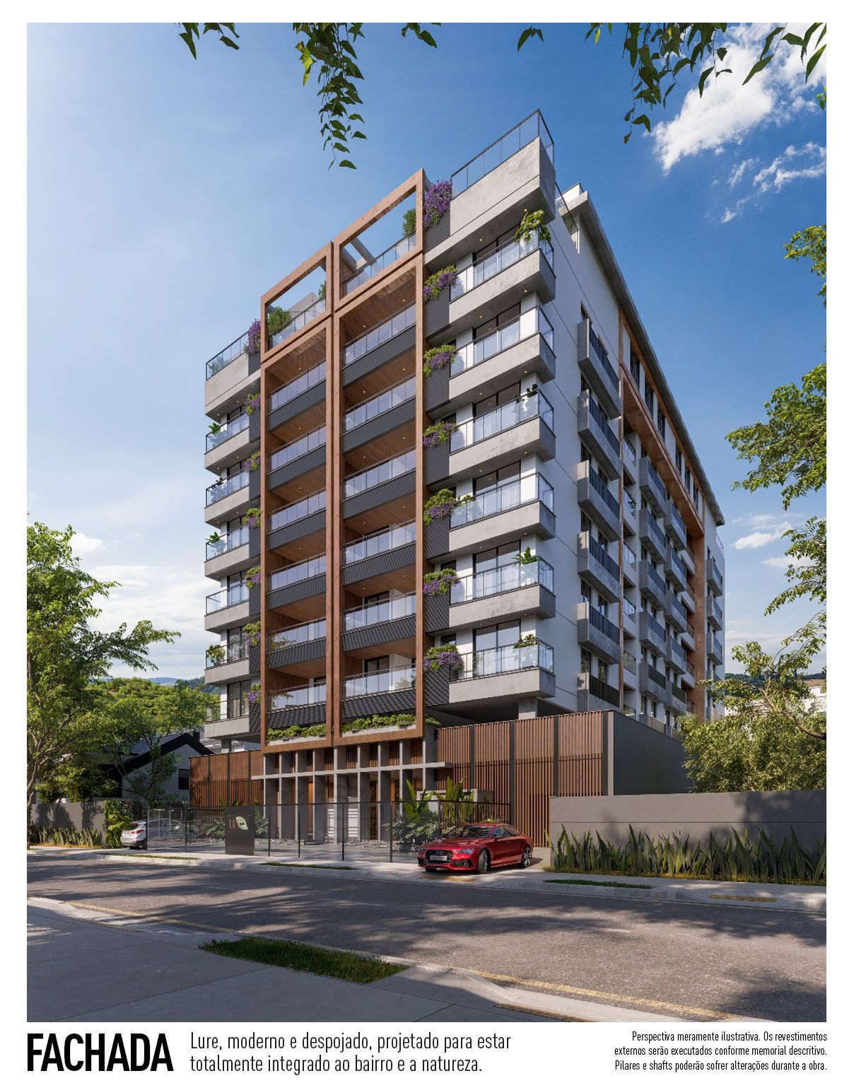 Perspectiva meramente ilustrativa com sugestão de decoração. Os móveis e equipamentos não são parte integrante do contrato. Os revestimentos internos das unidades serão executados conforme memorial descritivo. Pilares e shafts poderão sofrer alterações durante a obra.